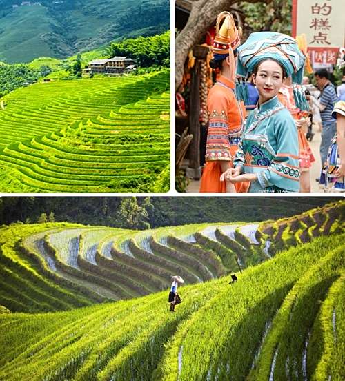 【龙脊梯田】:家庭亲子游必备—龙脊梯田,有“世界梯田之冠”美称。4月底-6月中旬灌水时镜面梯田,7月中小暑至大暑,稻谷葱绿时期,中秋前后5天-国庆前后,稻谷金色时期,都非常壮观;